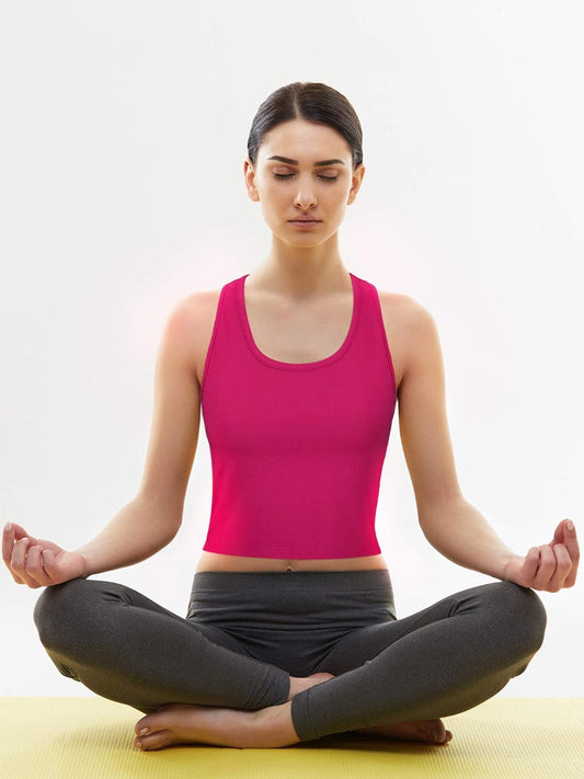 4 Pieces Basic Crop Tank Tops Sleeveless Racerback Sport Cotton Tank Tops for Women (Black, White, Rose Red, Purple,Large)